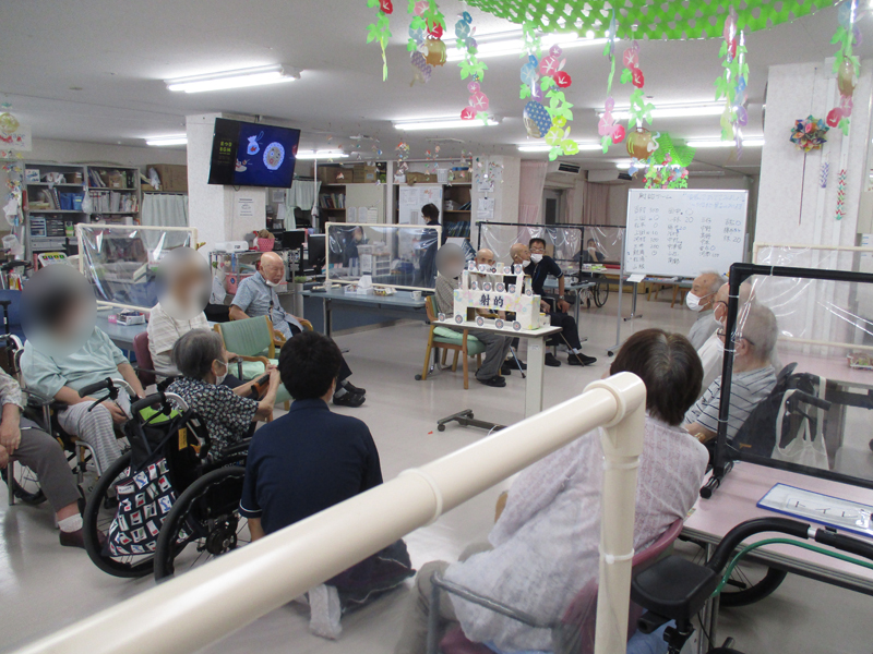 夏祭りと言えば、輪投げ・射的ということで週の前半・後半でゲーム変えて楽しいんでいただきました。
