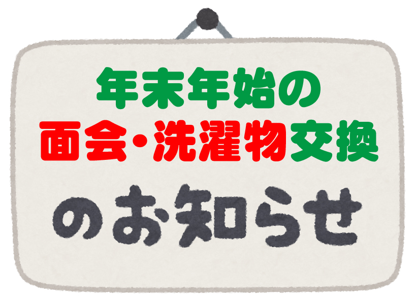 年末年始のご面会および洗濯物の交換につきまして、下記の通りご案内申し上げます。