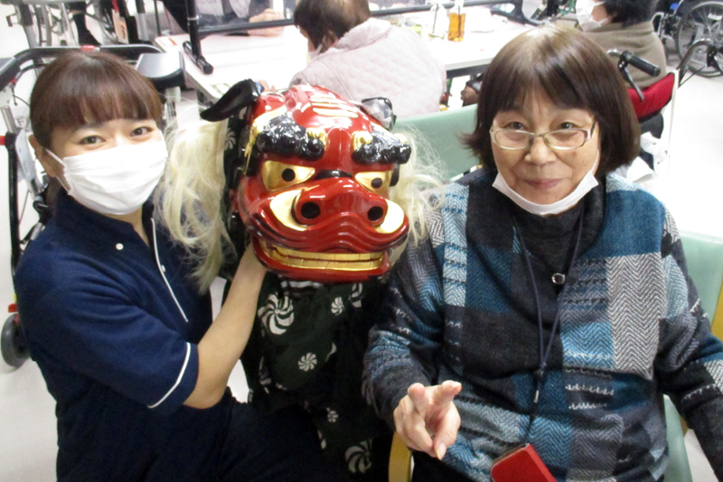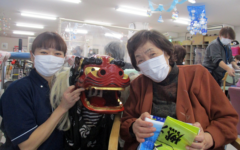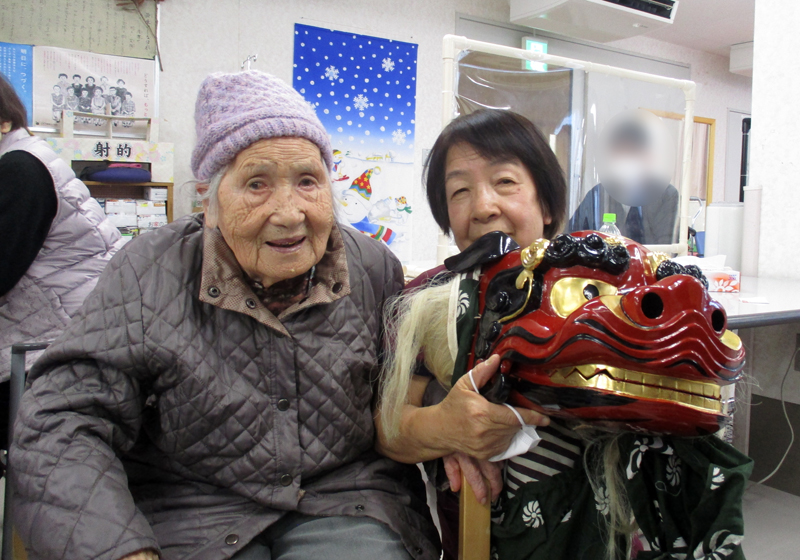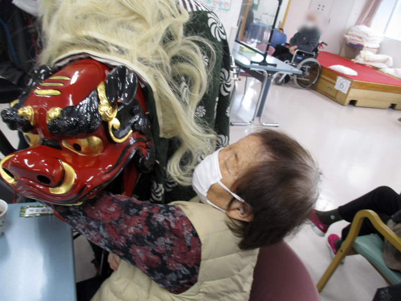 獅子舞も登場し、皆さまの無病息災を願ってお一人おひとりを噛んでまわりました。